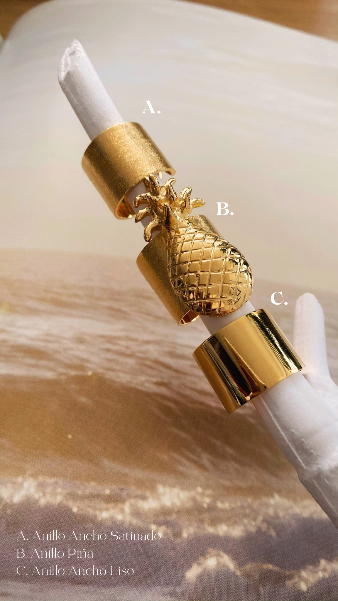 ANILLO HECHO EN BRONCE BAÑADO EN ORO DE 14K. CON ACABADO MATE SATINADO.