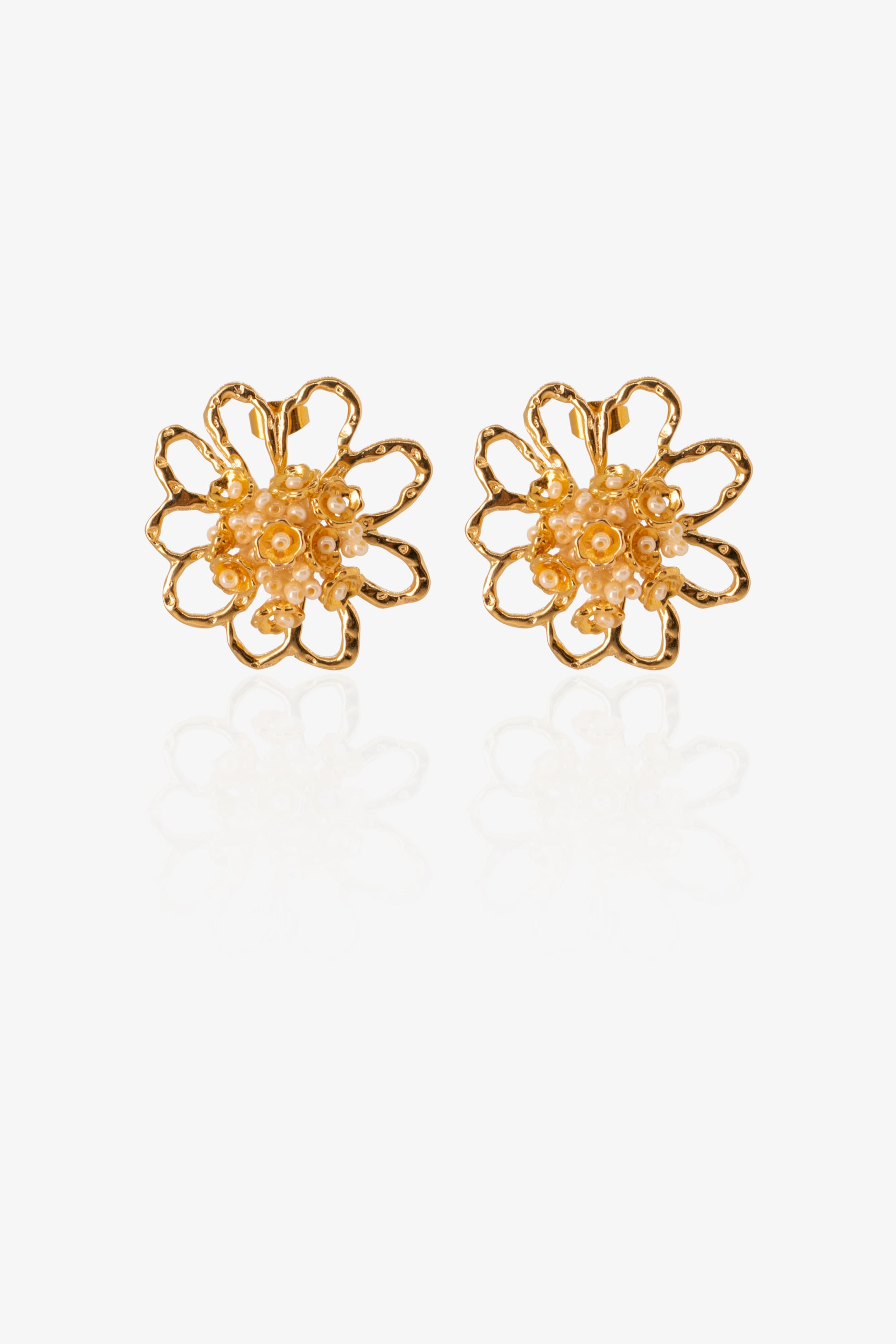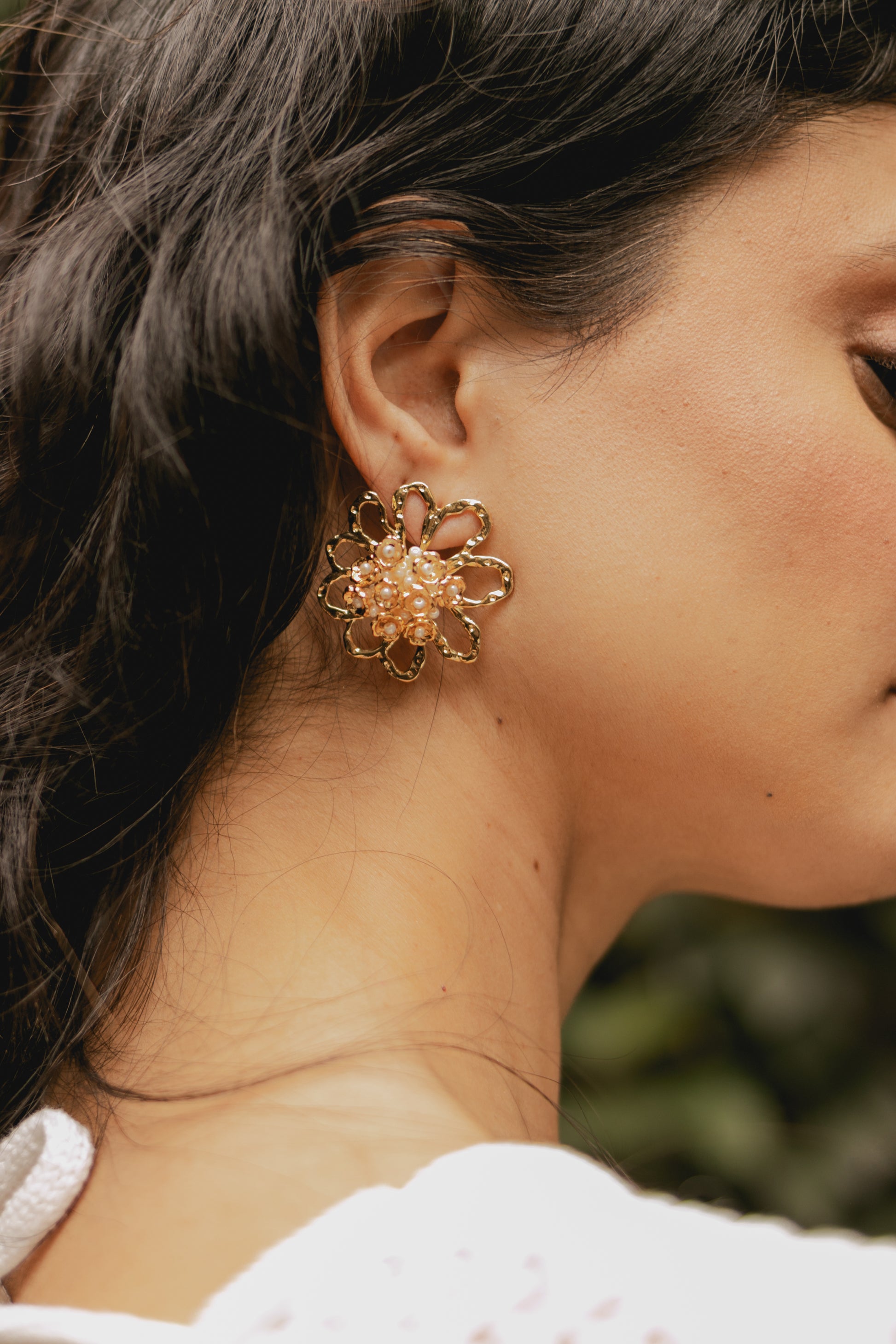 FLOR HECHA EN BRONCE BAÑADA EN ORO DE 14K. ORNAMENTADA A MANO CON CRISTALES.