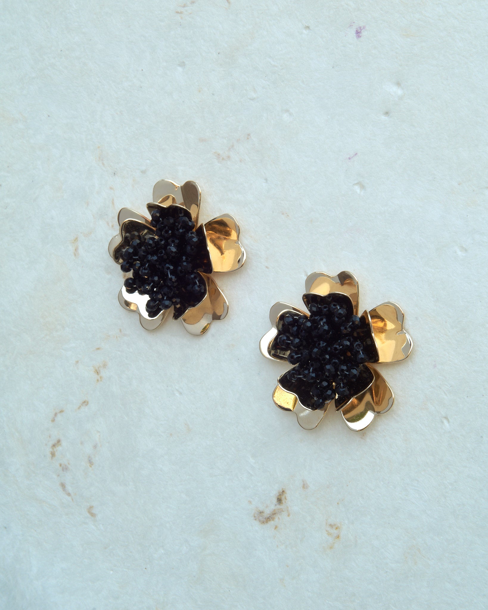 FLOR HECHA EN BRONCE BAÑADA EN ORO DE 14K. ORNAMENTADA A MANO CON CRISTALES.