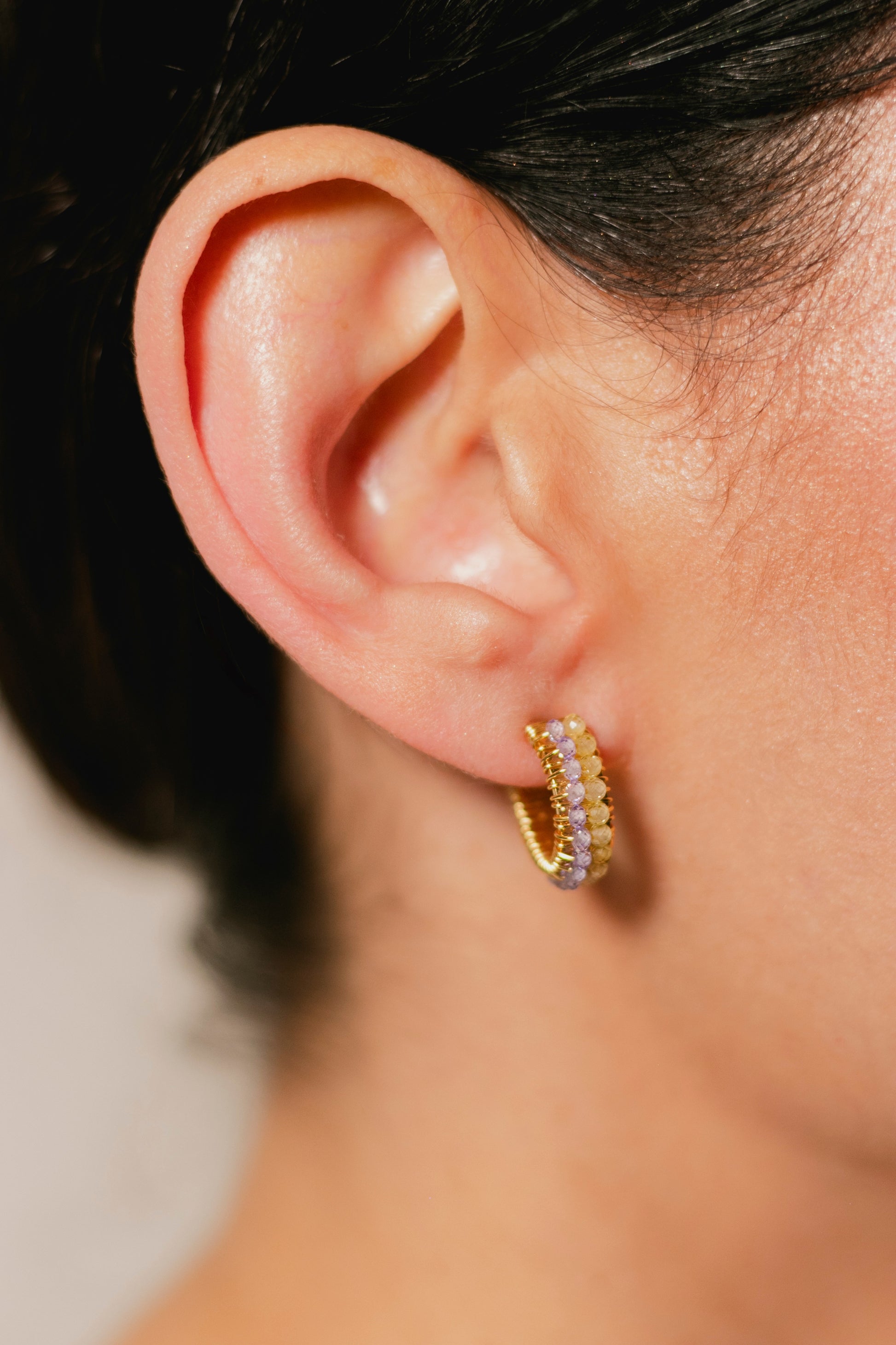 ARRACADA ABANICO DOBLE- LILA/VERDE