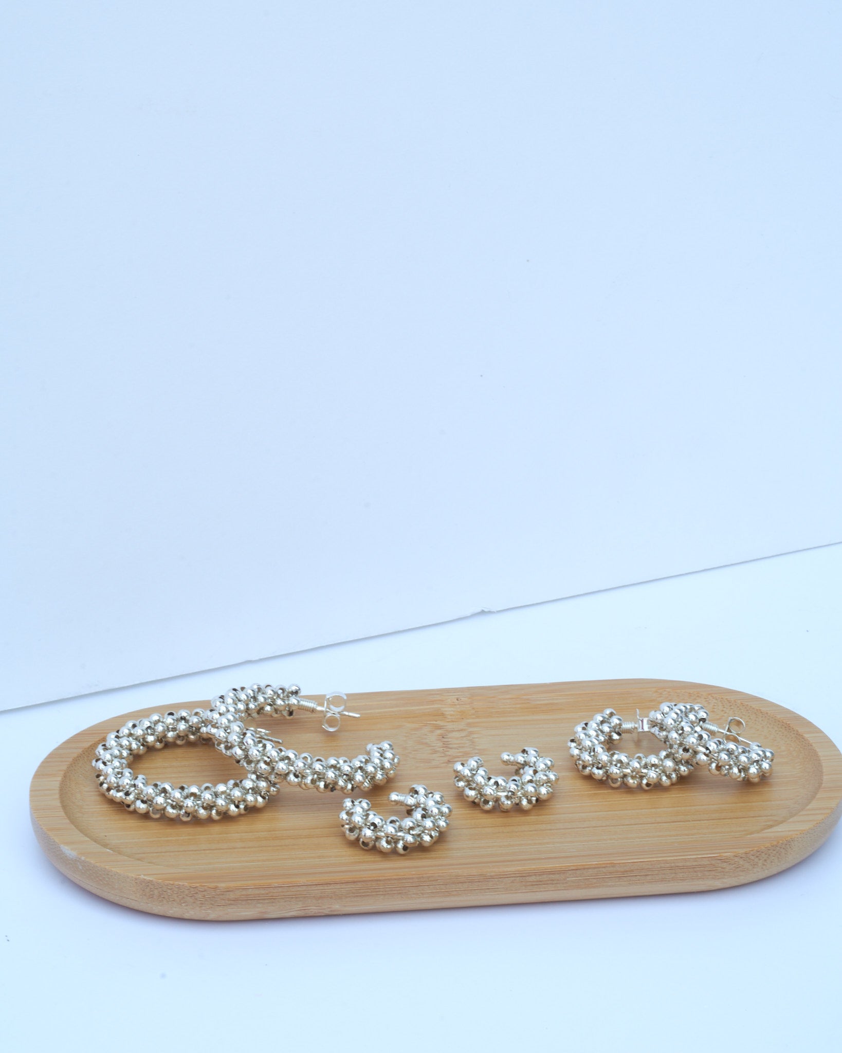 ARO EN BRONCE BAÑADO EN PLATA LEY 925 . BORDADO A MANO CON ESFERAS BAÑADAS EN PLATA , COLECCIÓN INSPIRADA EN LA PLANTA DE AMARANTO.