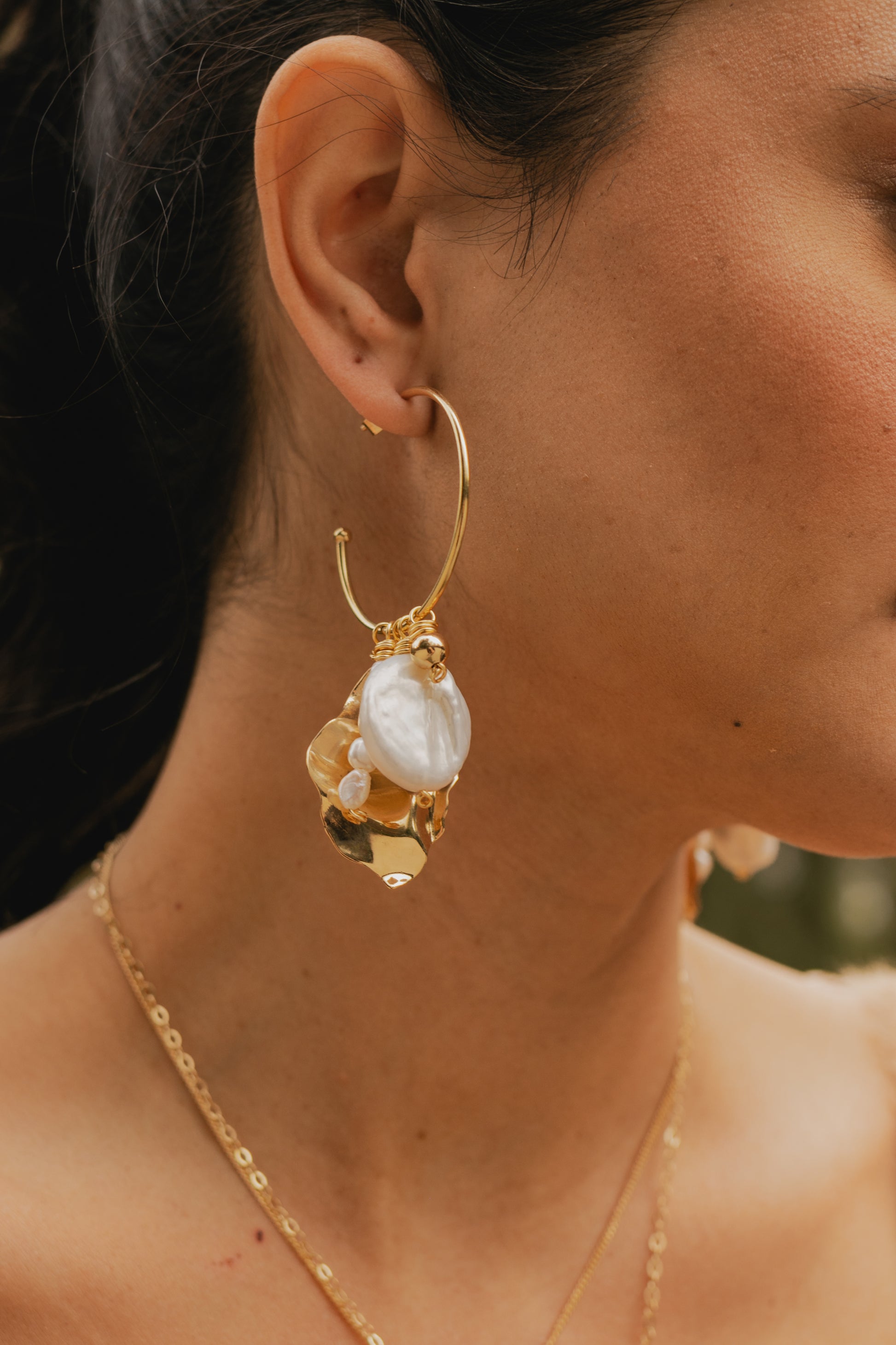 HECHA EN BRONCE BAÑADA EN ORO DE 14K. ORNAMENTADA A MANO CON PERLAS Y CRISTALES