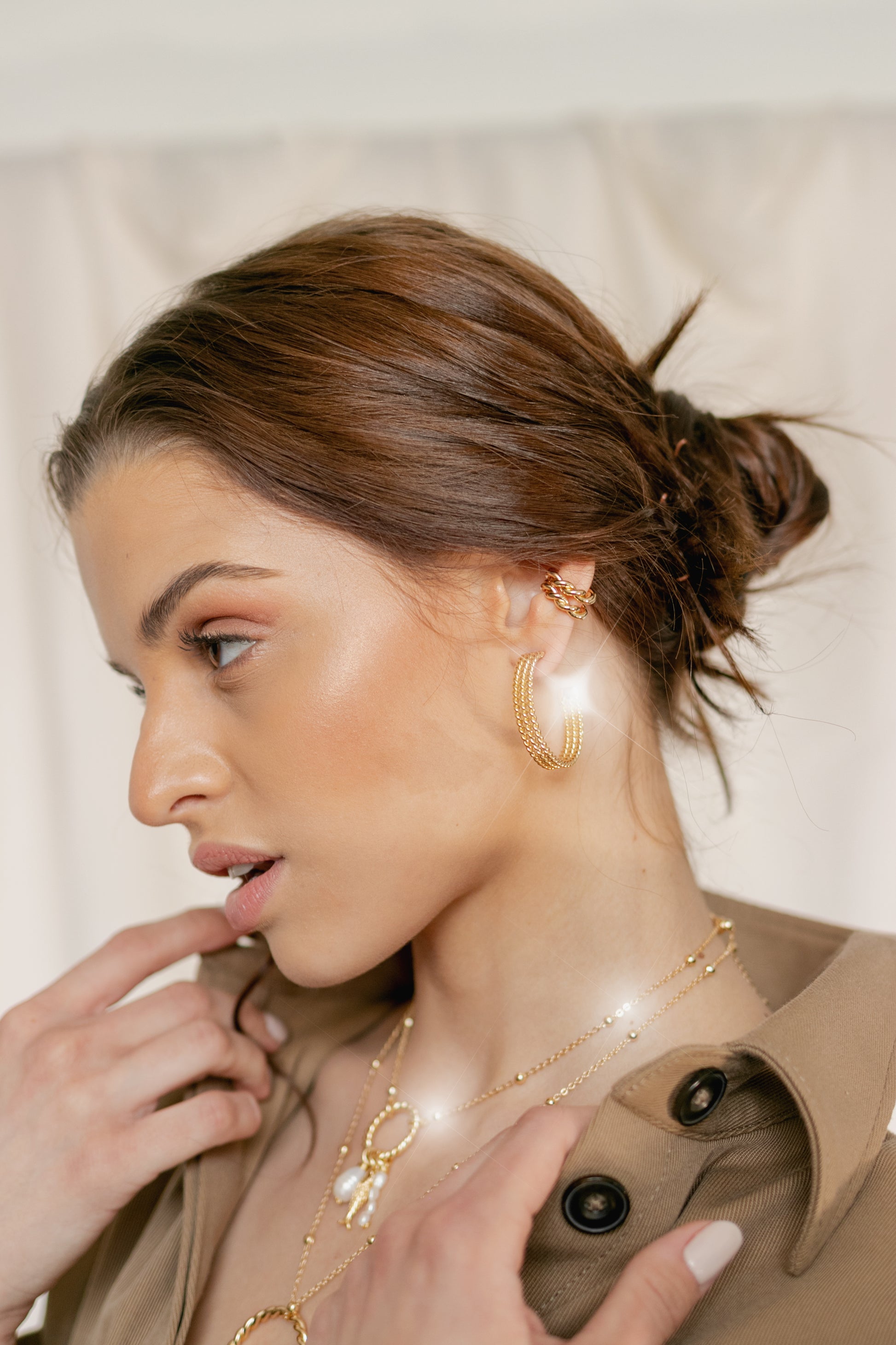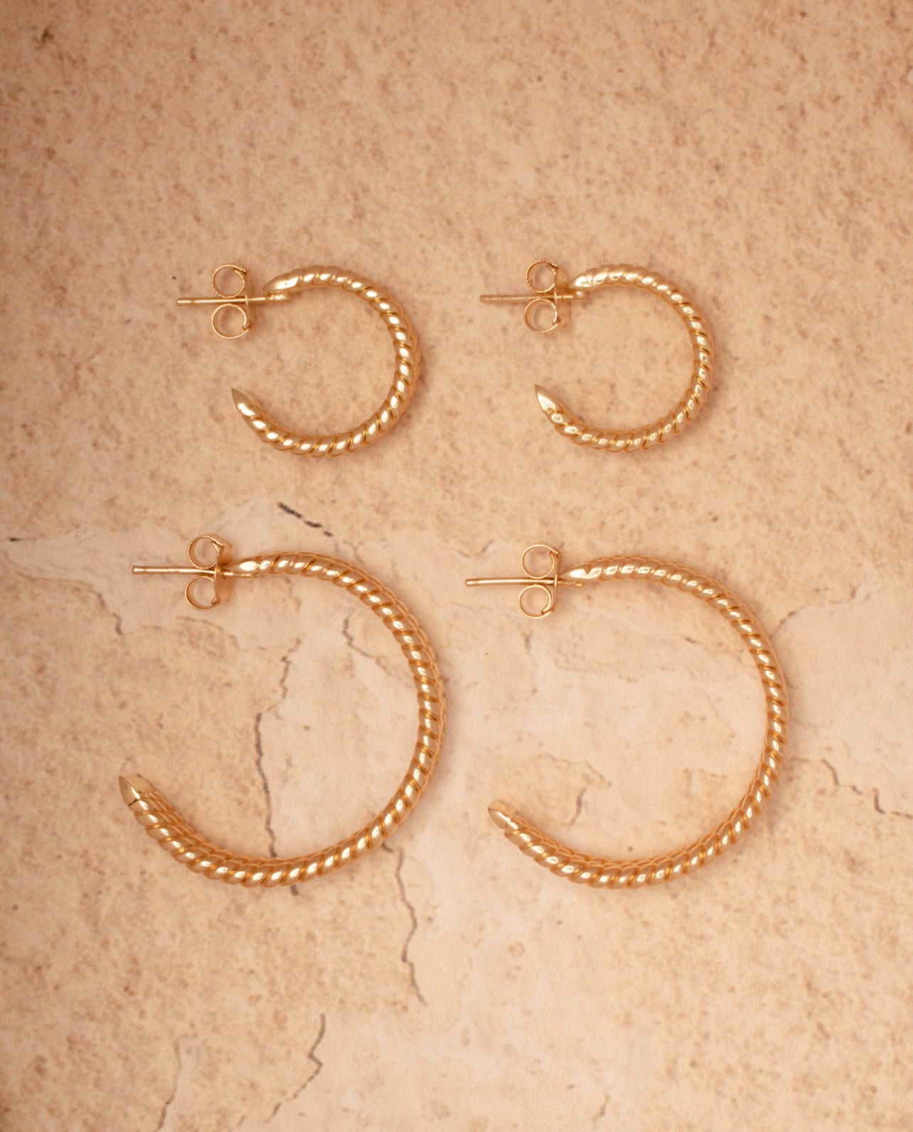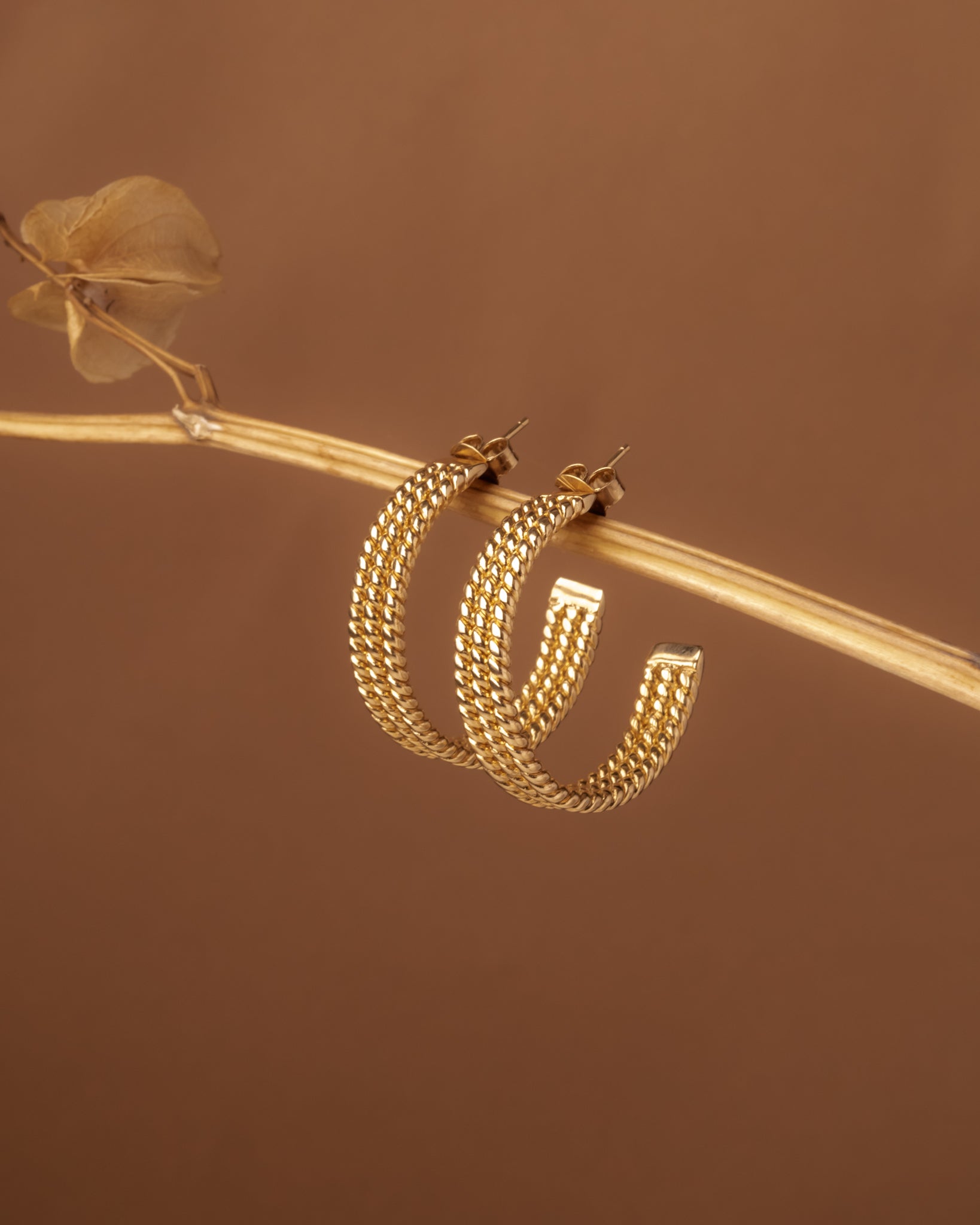 TRENZADAS A MANO ELABORADAS EN BRONCE BAÑADO EN ORO DE 14K. COLECCIÓN INSPIRADA EN EL TEJIDO DE LA FIBRA NATURAL.