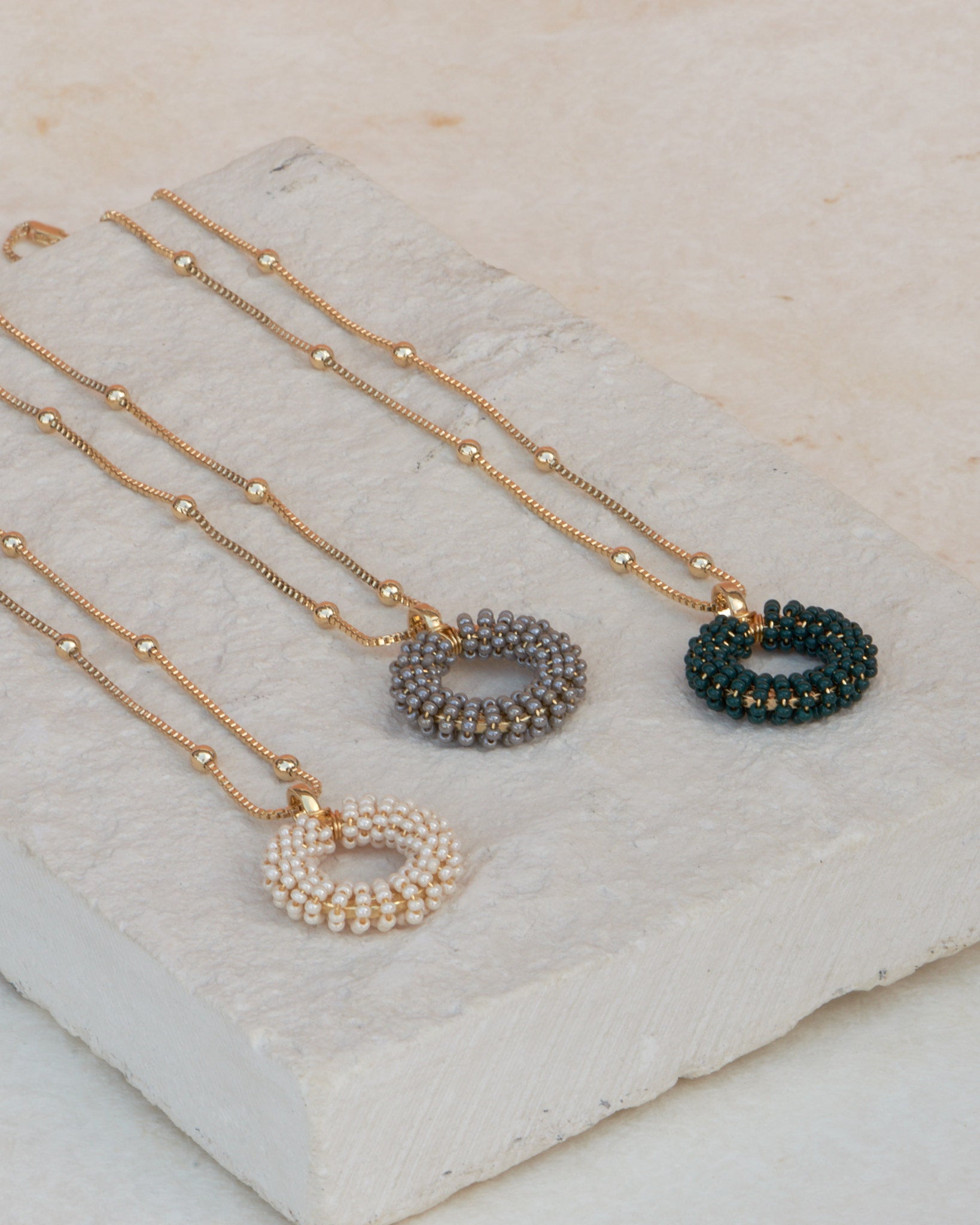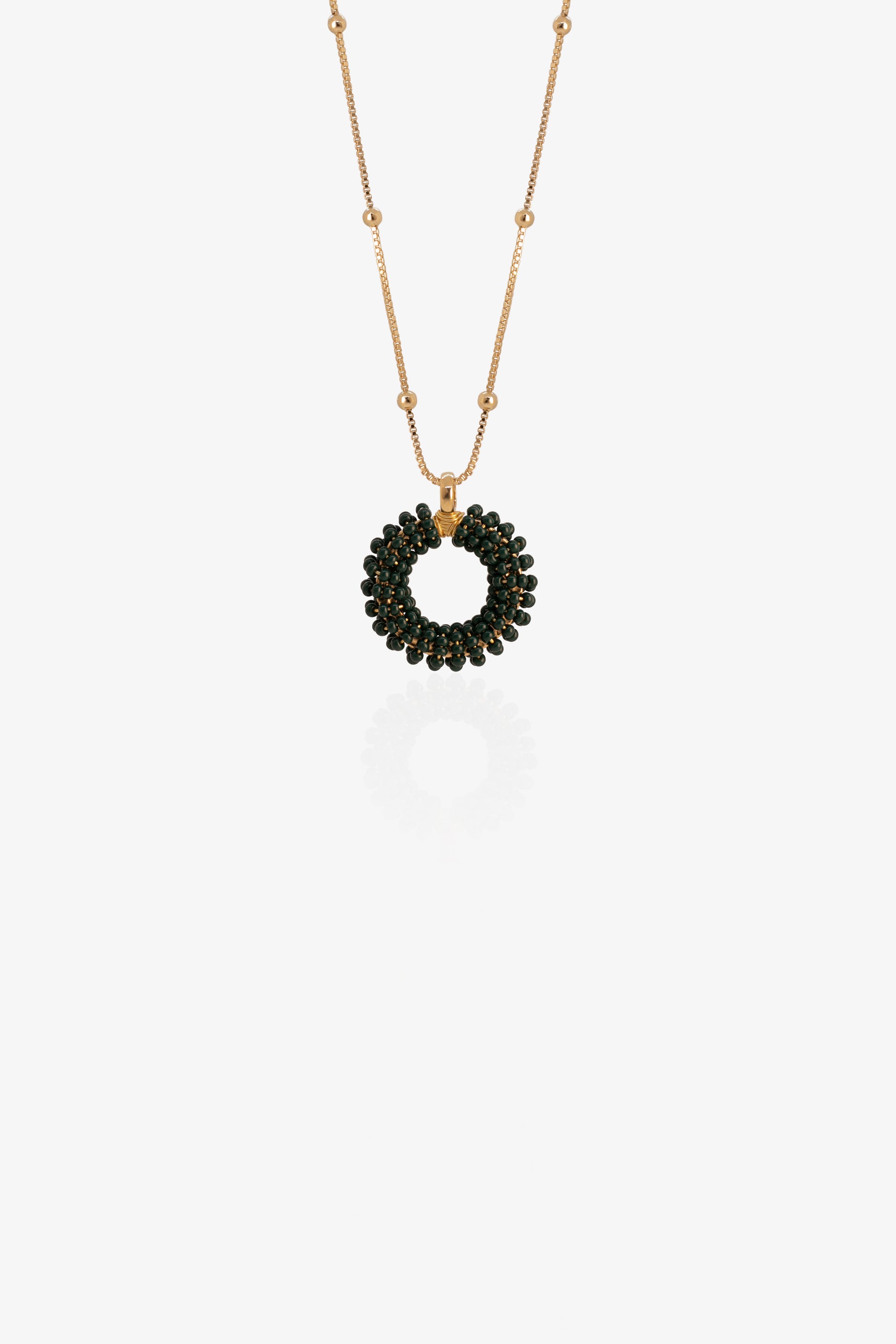COLGANTE EN BRONCE BAÑADO EN ORO DE 14K. BORDADO A MANO CON CRISTALES CHECOS, COLECCIÓN INSPIRADA EN LA PLANTA DE AMARANTO.