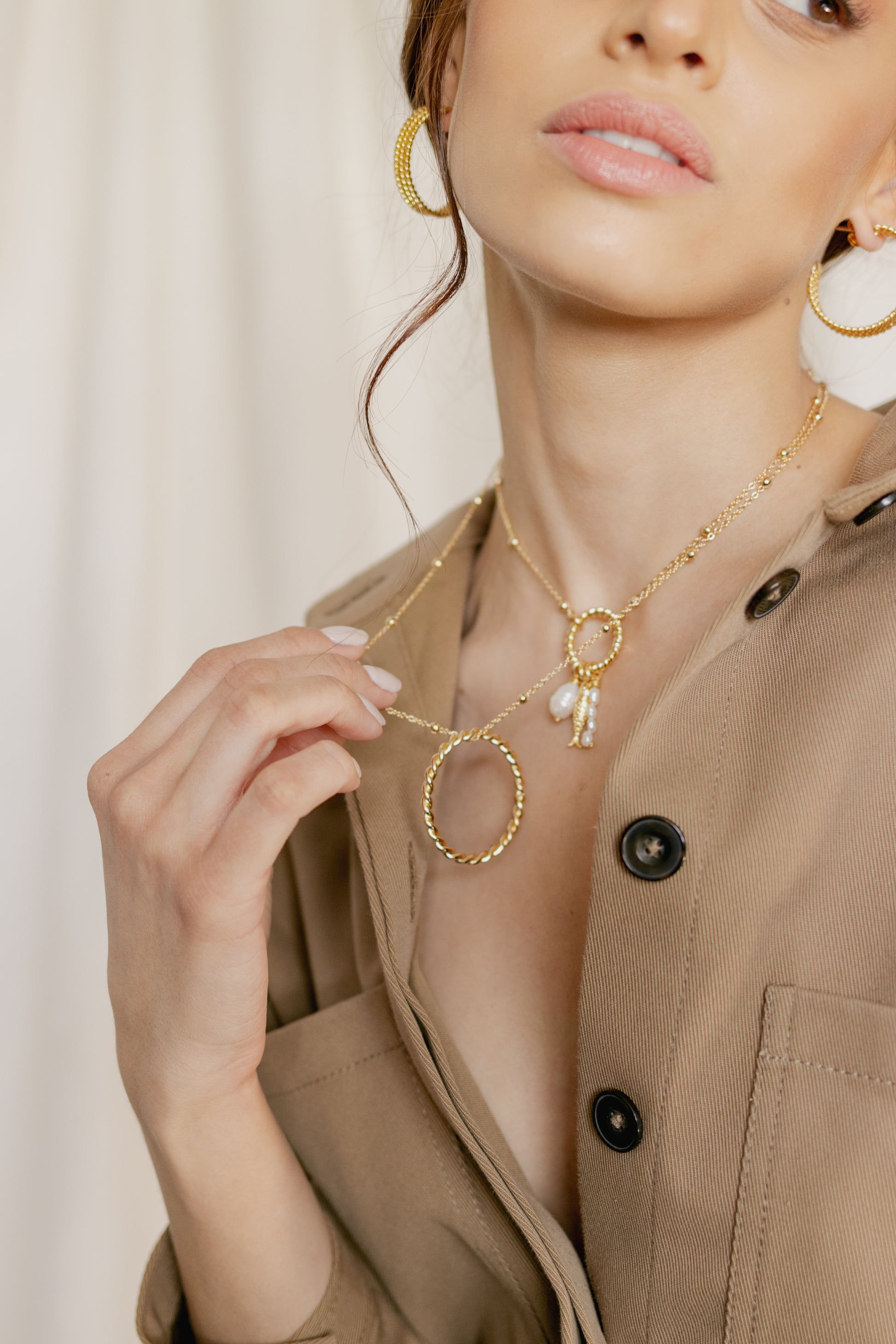 ARO TRENZADO A MANO ELABORADO EN BRONCE BAÑADO EN ORO DE 14K. COLECCIÓN INSPIRADA EN EL TEJIDO DE LA FIBRA NATURAL.