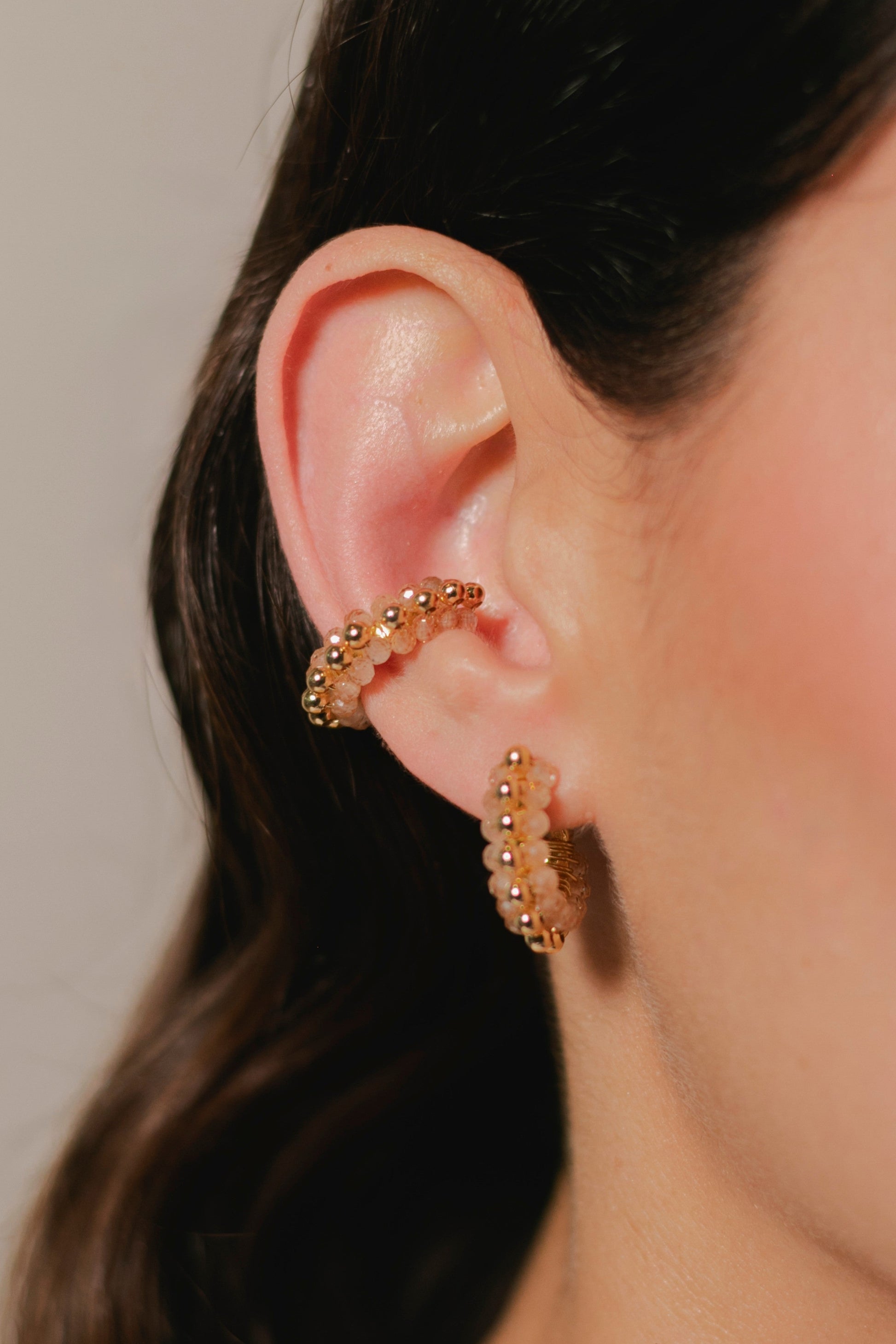 ARO HECHO EN BRONCE BAÑADO EN ORO DE 14K, TEJIDO A MANO CON PIEDRA SEMI PRECIOSA, RODOCROSITA.